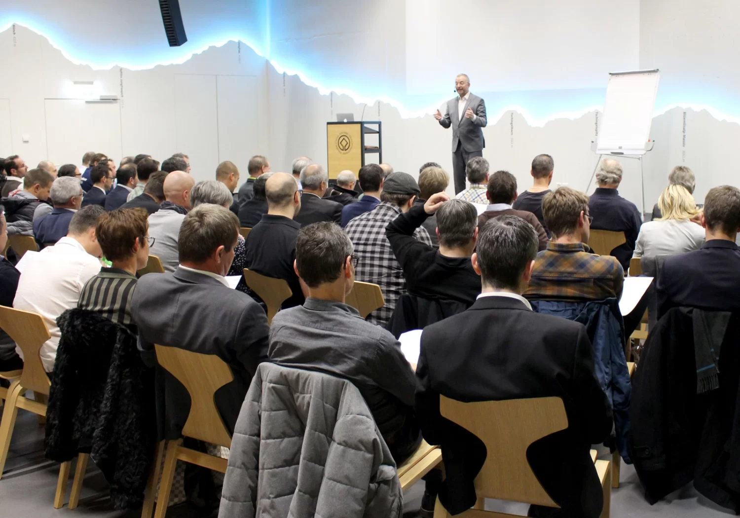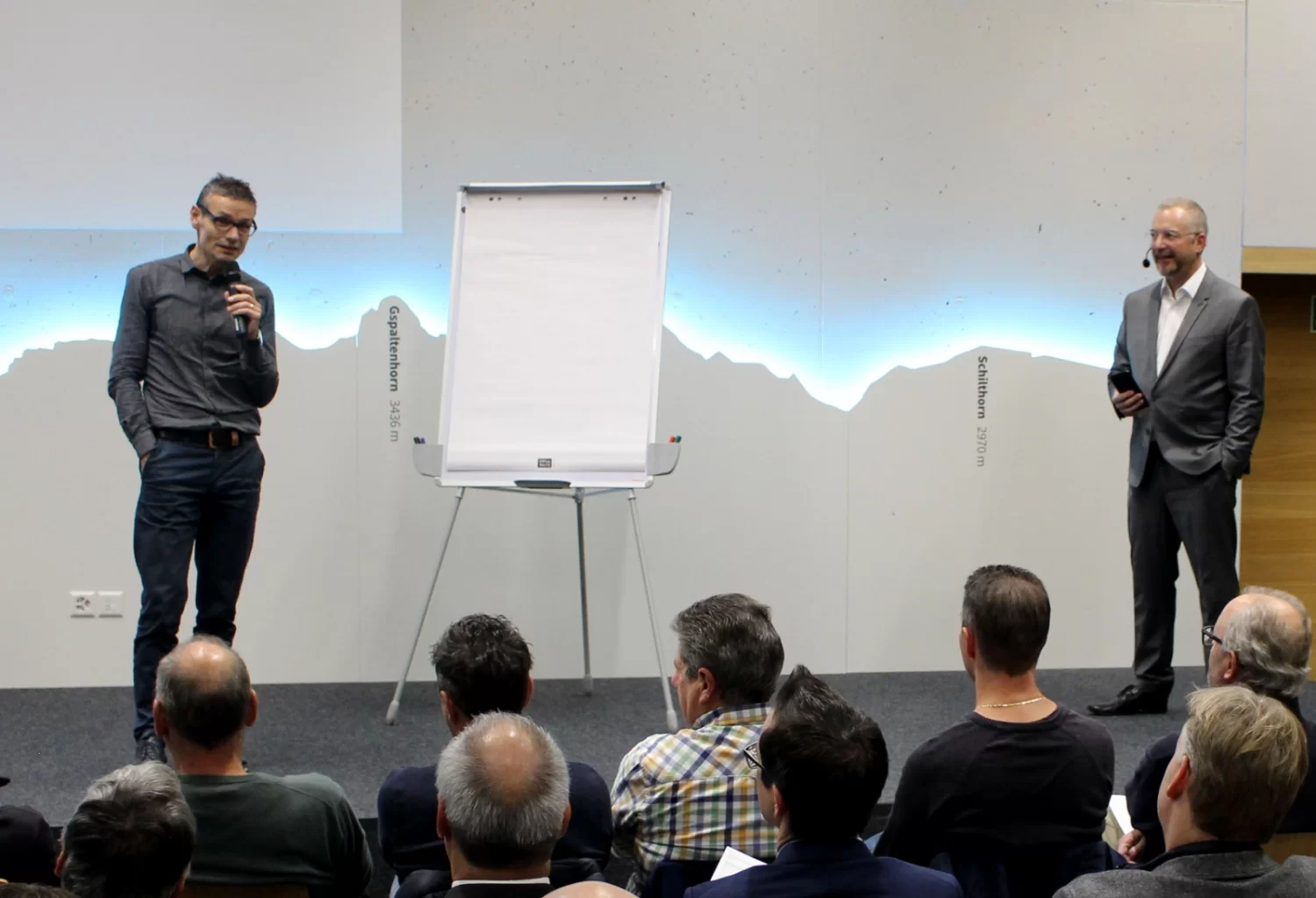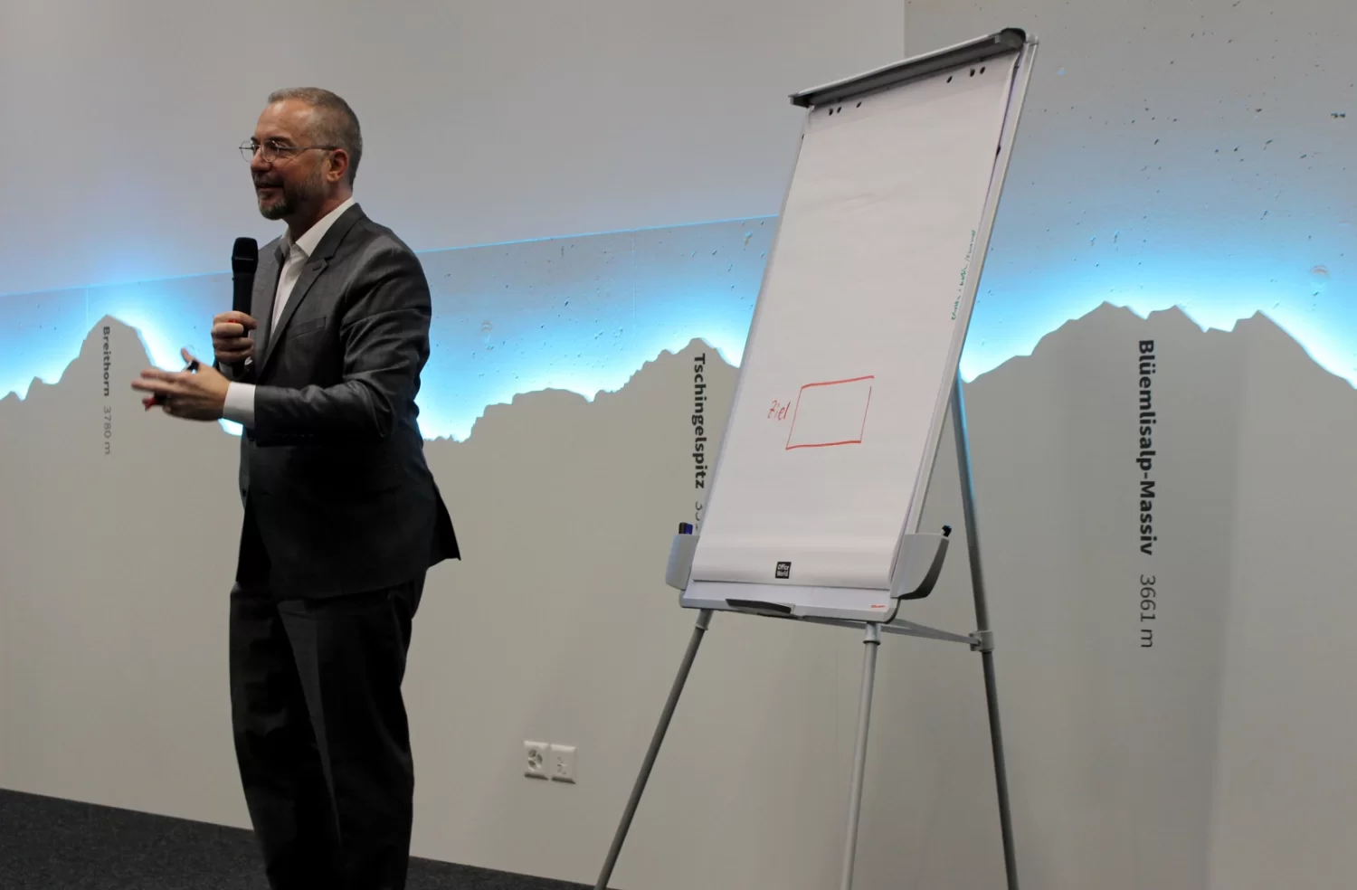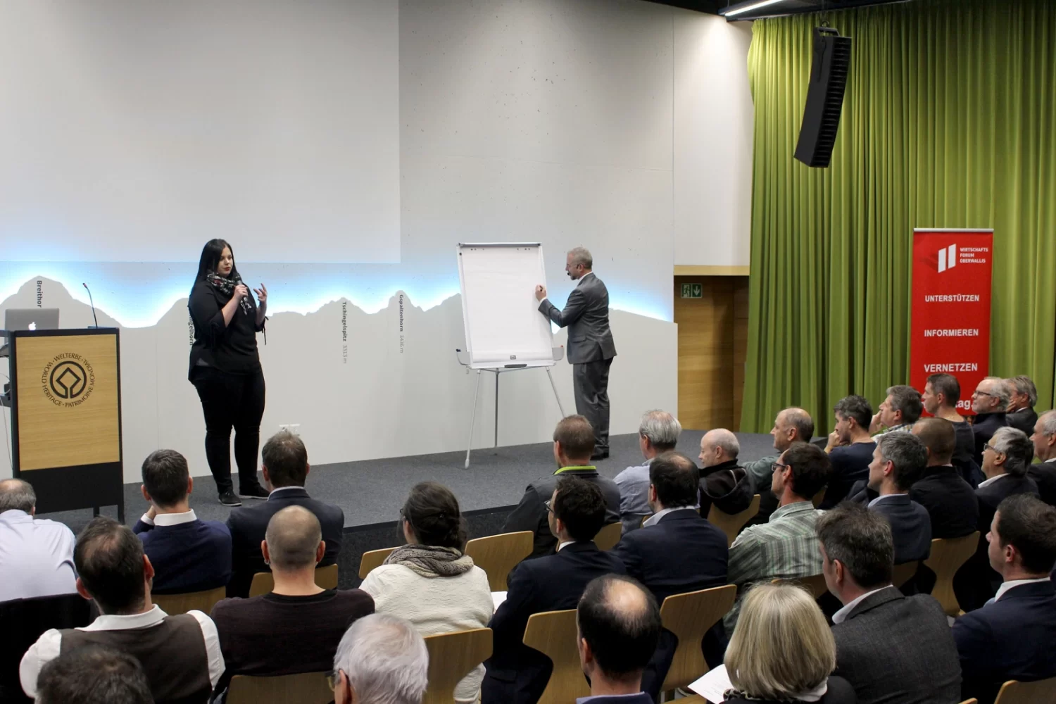 Mit Tipps vom Profi zu einem erfolgreichen Auftritt: Patrick Rohr referierte am Oberwalliser Wirtschaftstag 2018 in Naters über das Auftreten und Reden vor Publikum und arbeitete mit den Mitgliedern des Vereins Wirtschaftsforum Oberwallis an ihrer Auftrittskompetenz.